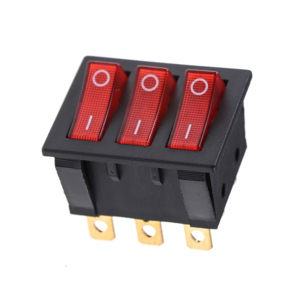 Потрійний перемикач, кнопка KCD3 з підсвіткою AC 250 В 16 А/30 А 9 контактів — Червоний